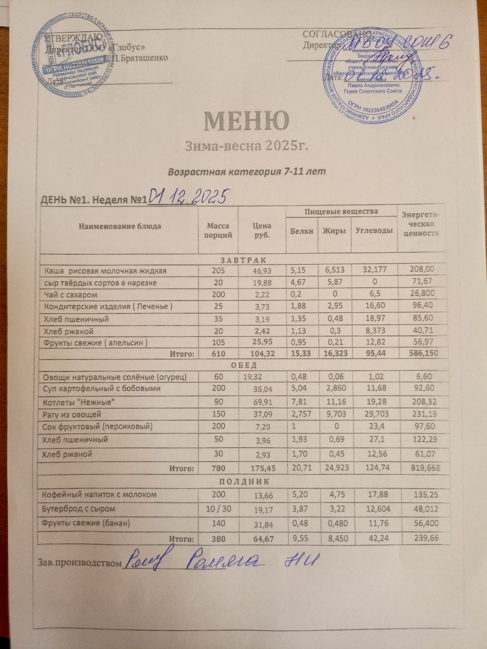 Ответ: Такая информация размещается на сайтах Минпросвещения России, МОНиМП Краснодарского края, на текущем сайте во вкладке «Организация питания в образовательной организации».